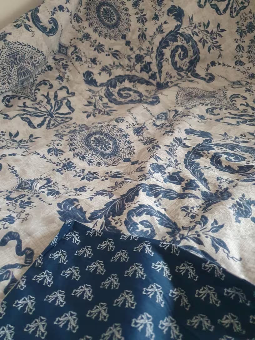 Housse couette et taies oreillers, 100% coton, excellente qualité. Entretien et repassage facile.